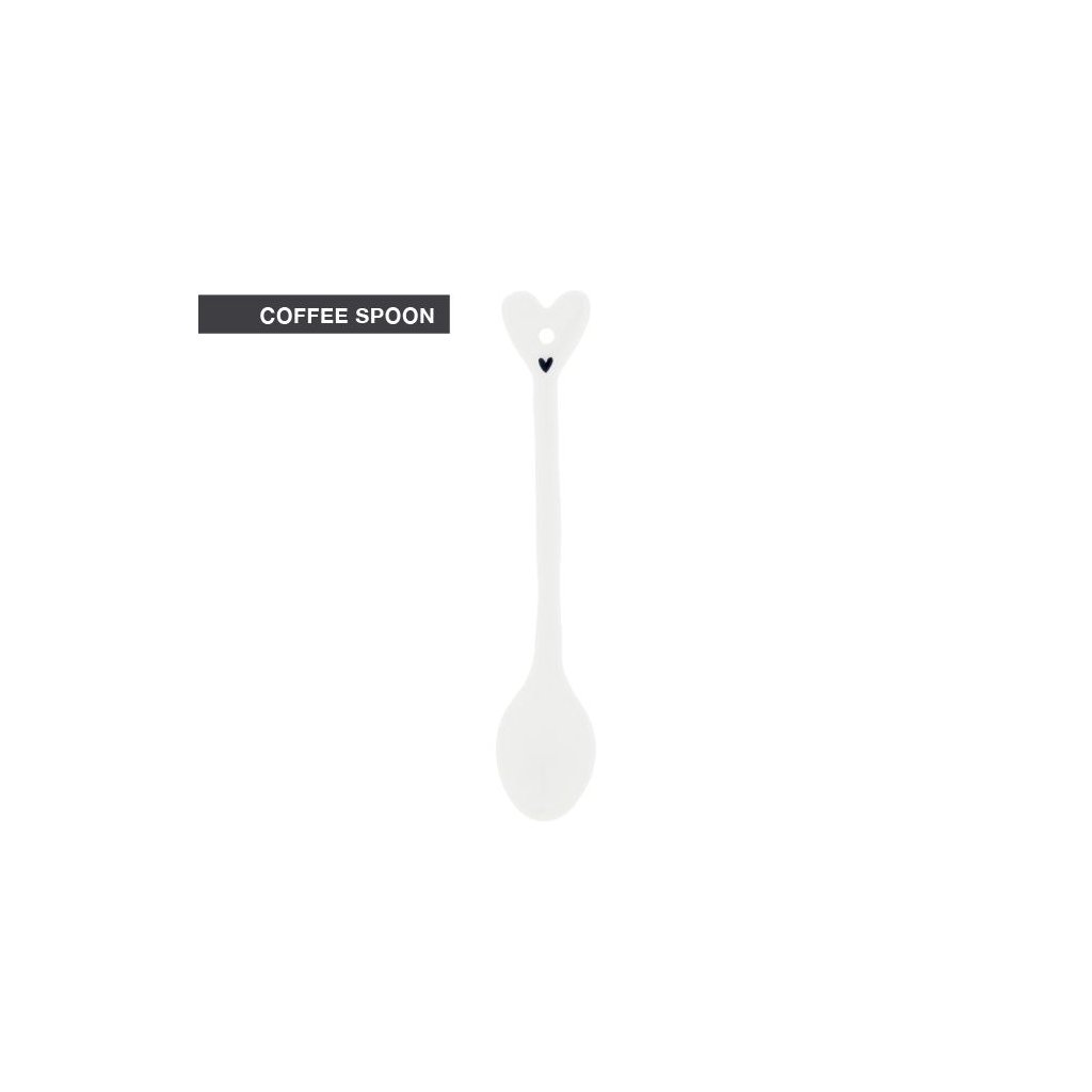 Biela keramicka lyžička stredná/ Čierne srdiečko