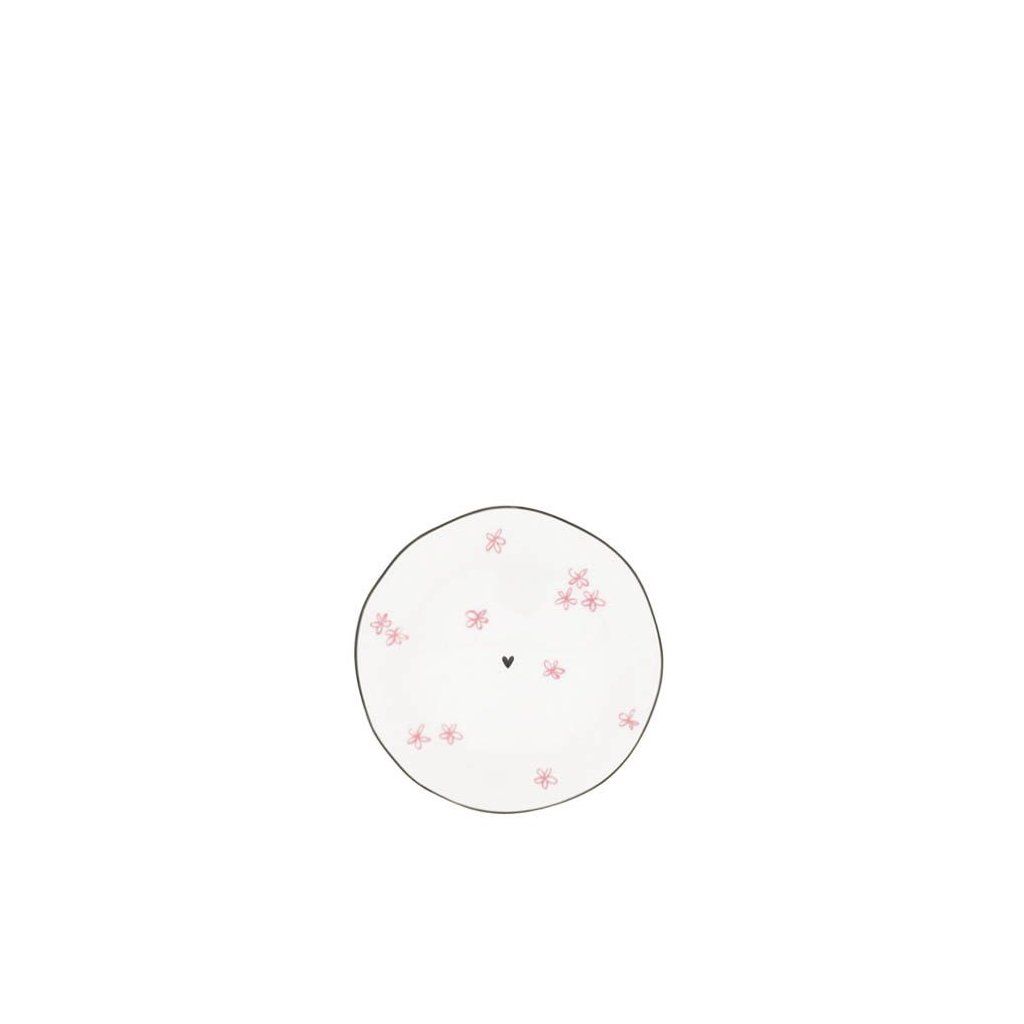 Maselnička je dostatočne veľká na celú kocku masla. Bielu glazúru zdobí tlač malých modrých kvietkov a malé čierne srdiečko, ktoré je pre túto značku...