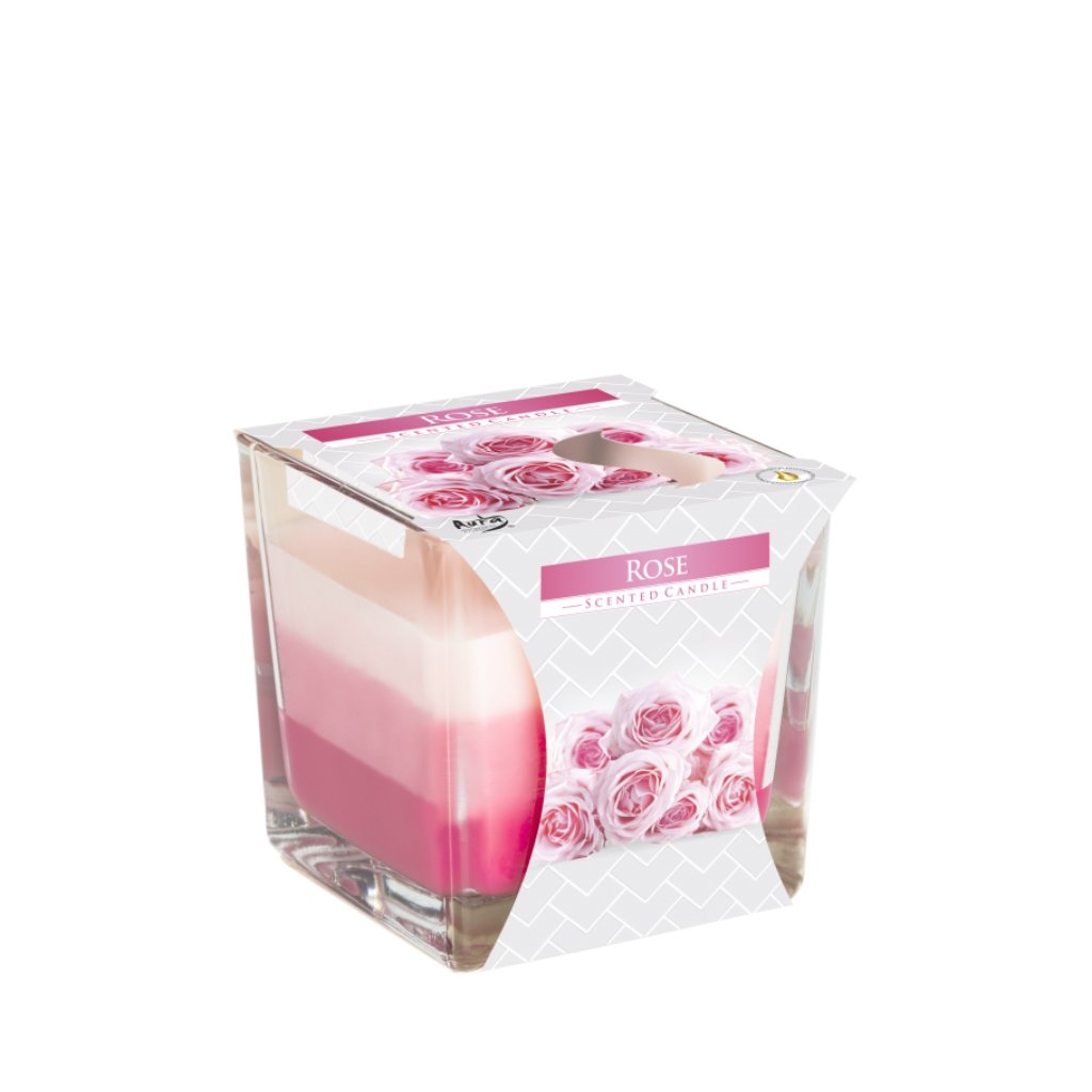 Rozmery: 8 x 8 x 8 cm. Materiál: vosk, sklo. Doba horenia cca 32 hodín. Dúhová sviečka v skle – Fialka v hranatom pohári s trojfarebným voskom sú perfektným riešením pre...