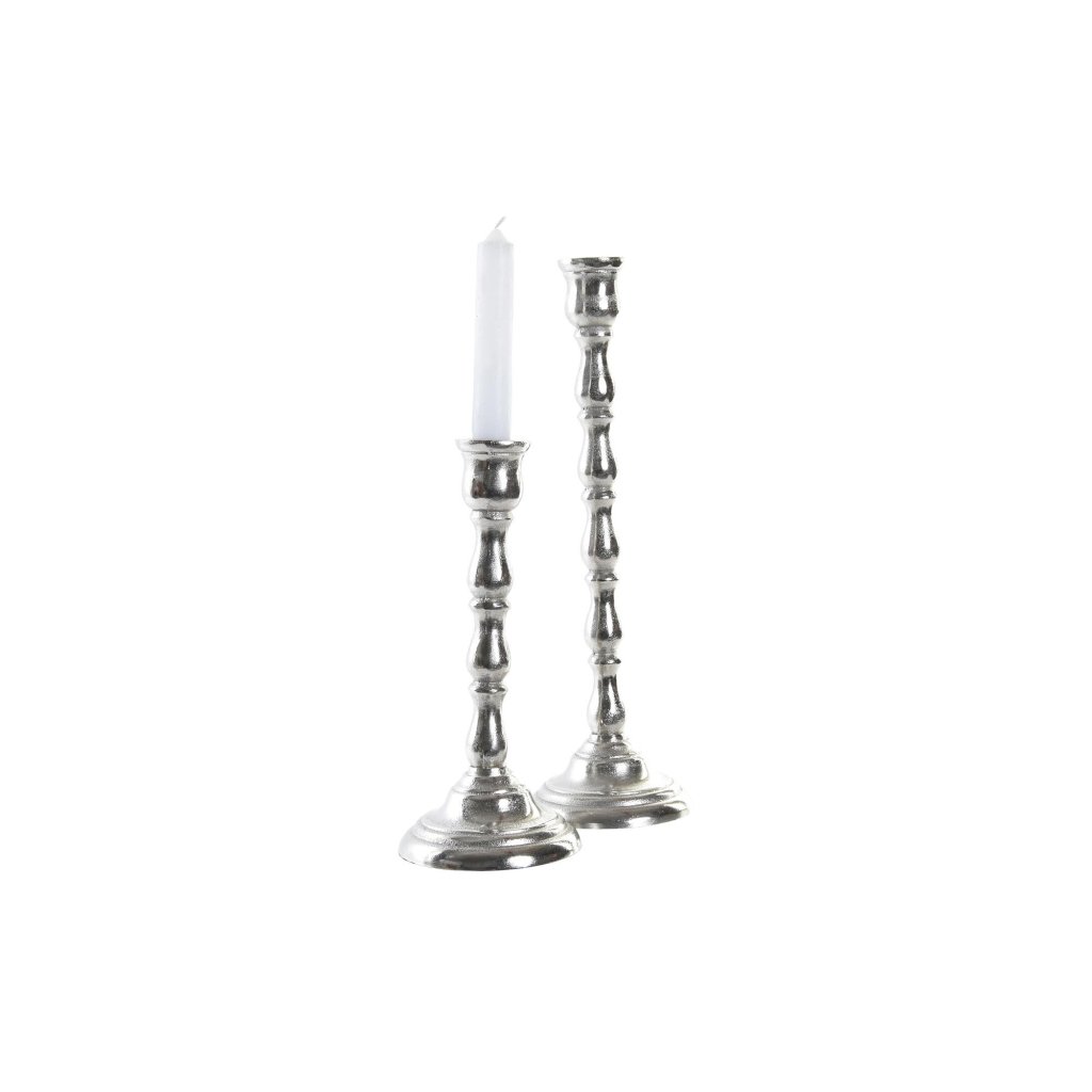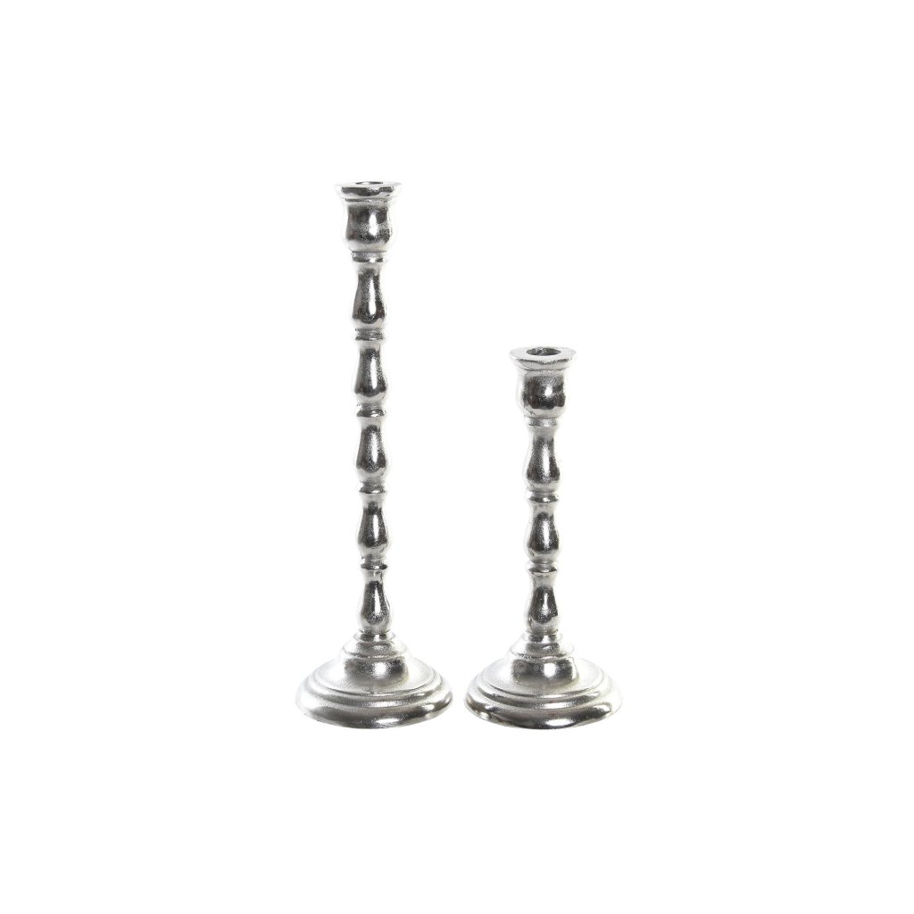 Dekoratívny svietnik, priemer základne 10 cm, výška 33 cm. Materiál hliník, farba strieborná.