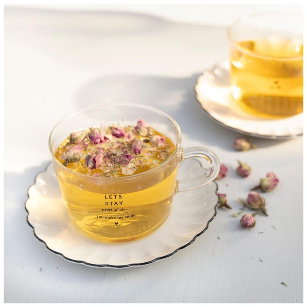 Sklenený hrnček na čaj/ LETS STAY warm
